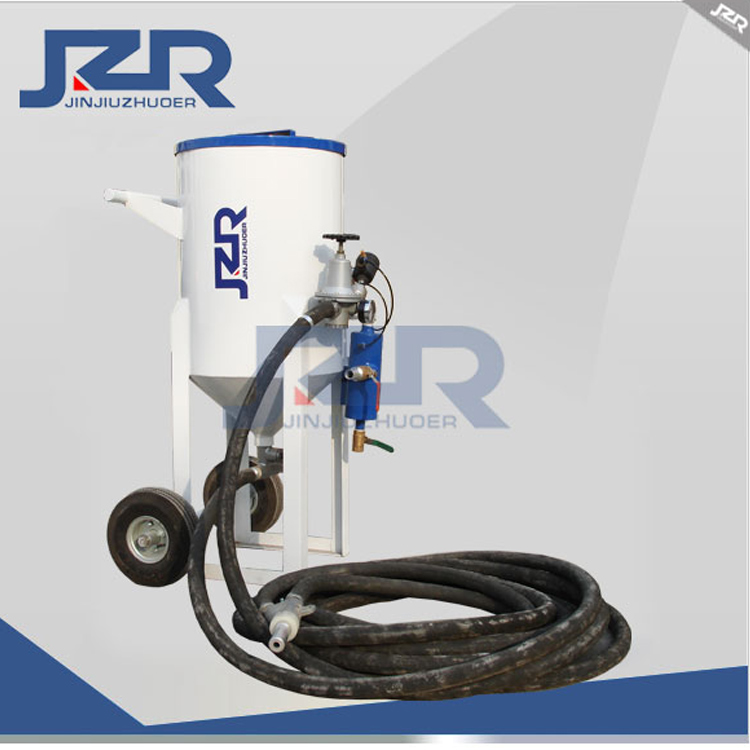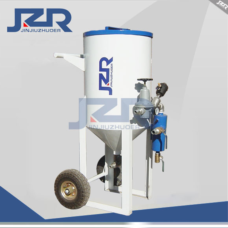 JZK-400P sandblasting machine is suitable for small-scale open sandblasting operations, and is used for the cleaning of oxide scale, rust scale and paint scale of soft material workpieces. The equipment has the performance of continuous sandblasting without stopping, and is one of the ideal equipment for cleaning and removing rust, paint and scale, strengthening the surface and eliminating internal stress before coating the surface of metal structural parts. Compared with high-pressure sandblasting equipment (such as: JZK-600P sandblasting machine, JZK-700P sandblasting machine, JZK-800P sandblasting machine), JZK-400P has weak impact force on the workpiece and is not easy to cause deformation. The disadvantage is that the efficiency is low and it is not easy to use metal abrasives with small mesh.