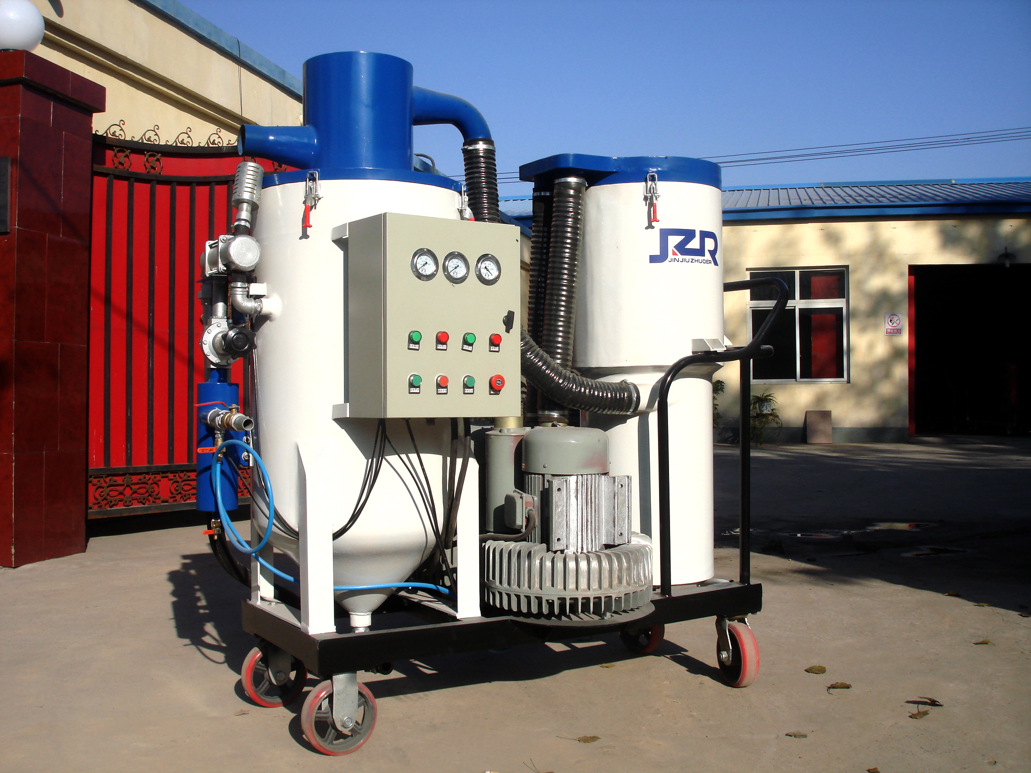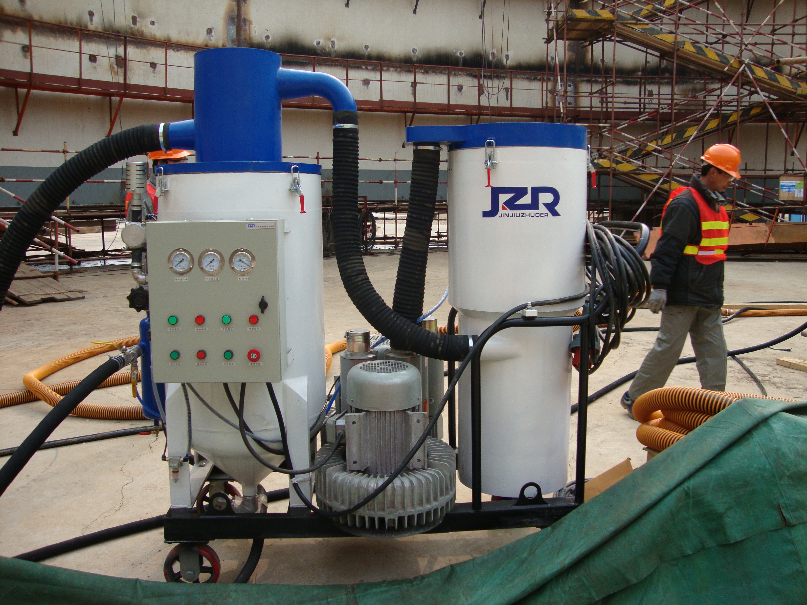 該設(shè)備適用于現(xiàn)場遠程或高空較長距離環(huán)保噴砂作業(yè),滿足現(xiàn)場不方便移動設(shè)備和場地受限等工況。對較大型工件、金屬結(jié)構(gòu)表面涂化前清理除銹、除漆、污垢理想的設(shè)備之一。 本設(shè)備與JZR-2DH型屬于同一級別,工作半徑和工作效率相同。該設(shè)備適用磨料主要以棕剛玉、石榴砂和細小鋼砂為主;JZR-LZ600型適用磨料主要以金屬磨料為主,比如:鋼砂、鋼丸等,回收能力和作業(yè)半徑優(yōu)于JZR-2D。(查看噴砂機視頻)